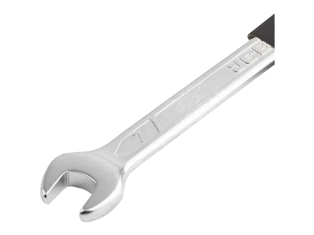A 7 mm-es, 75°-os szögben hajlított kombinált villáskulcs nehezen hozzáférhető helyeken való munkavégzésre tervezett szerszám. A mély bemélyedéssel ellátott speciális kialakítás további átjárót biztosít, aminek köszönhetően kényelmesen megfoghatók és elforgathatók a rögzítőelemek ott is, ahol a hagyományos villáskulcsok vagy racsnik már nem működnek.