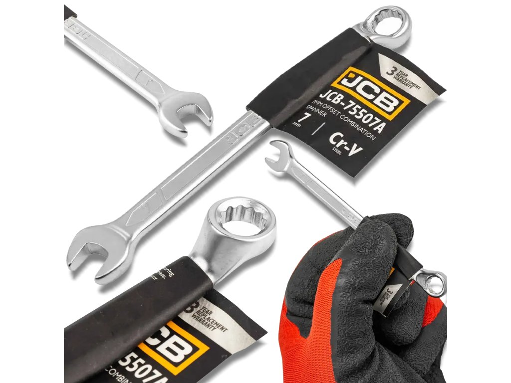 JCB 7 mm-es csillag-villáskulcs, 75°-ban hajlított, kétoldalas, Cr-V acél