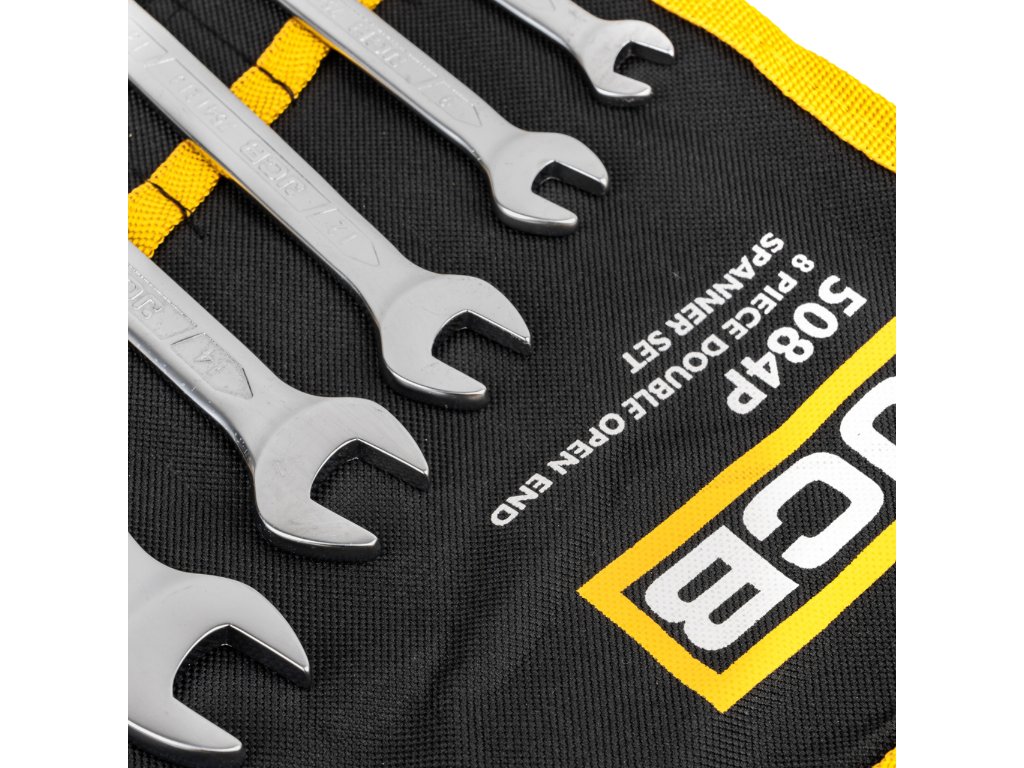 JCB 8 db-os lapos villáskulcs-készlet, 8–24 mm, Cr-V, tokban