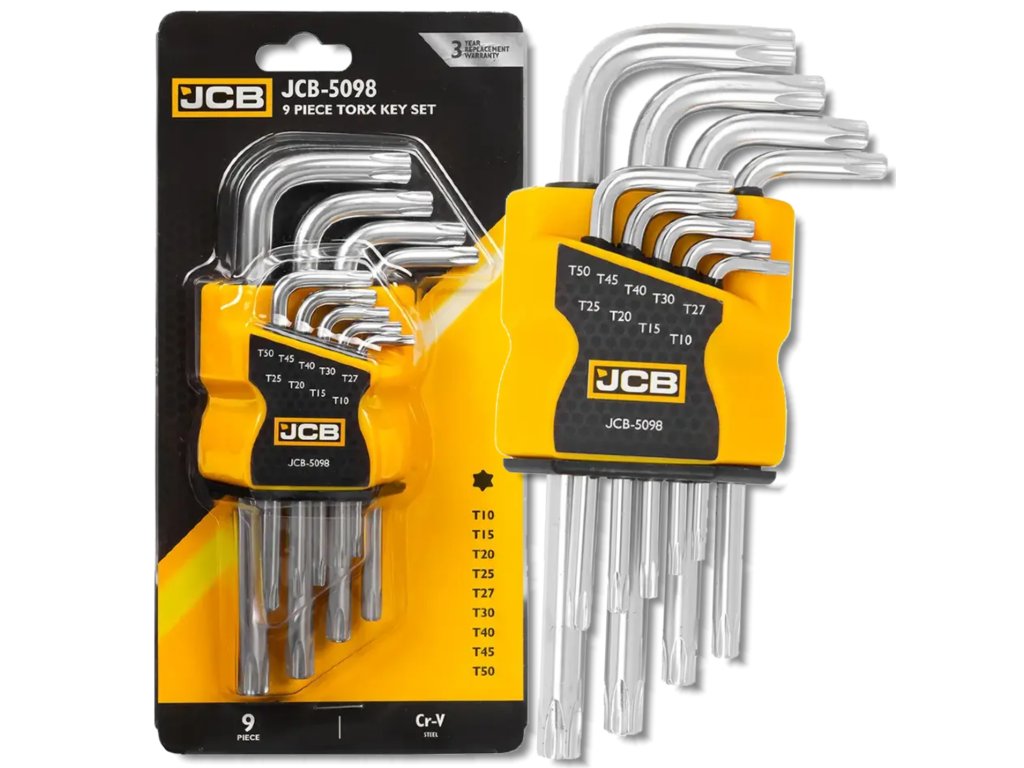 JCB 9 részes Torx villáskulcs készlet L-típusú T10–T50, Cr-V