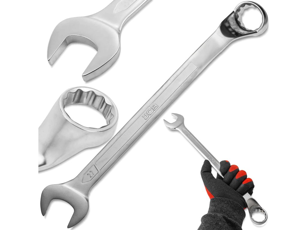A 27 mm-es, 75°-os szögletes kombinált villáskulcs nehezen hozzáférhető helyeken való munkavégzésre tervezett eszköz. A speciális, mélyen süllyesztett kialakítás extra szabad mozgásteret biztosít, lehetővé téve a rögzítőelemek szabad megfogását és elforgatását akkor is, ha a hagyományos villáskulcsok vagy racsnik meghibásodnak.