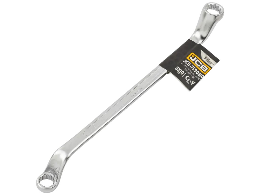 JCB dupla 12 pontos villáskulcs, 75°-os szögben hajlított, 8 × 10 mm, Cr-V