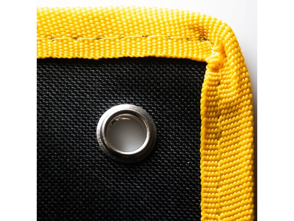 Két fém fűzőlyuk (megerősített szélekkel) lehetővé teszi a táska rögzítését műhely vagy garázs falára. A fűzőlyukak elhelyezése teljes terhelés alatt is stabilitást biztosít.