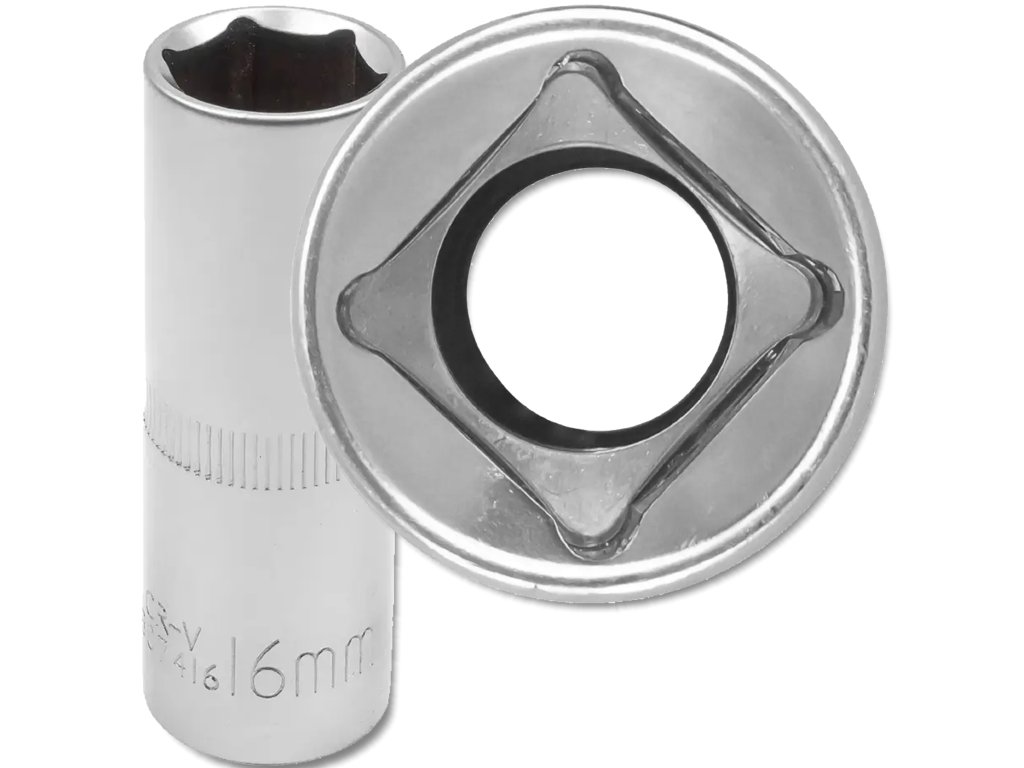 A 16 mm-es gyújtógyertya-kulcs 1/2"-os behajtással egy megbízható és praktikus eszköz, amelyet az autók és motorkerékpárok gyújtógyertyáinak gyors és biztonságos cseréjére terveztek. Precíz kialakításának köszönhetően biztosítja a gyújtógyertya szilárd illeszkedését, és minimalizálja a sérülés kockázatát a beszerelés és kiszerelés során.