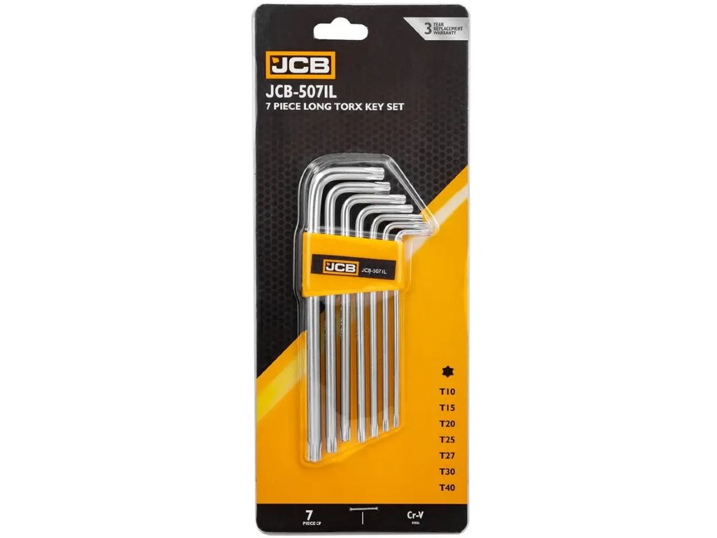 JCB hosszú Torx imbuszkulcs készlet, 7 részes, T10–T40, Cr-V