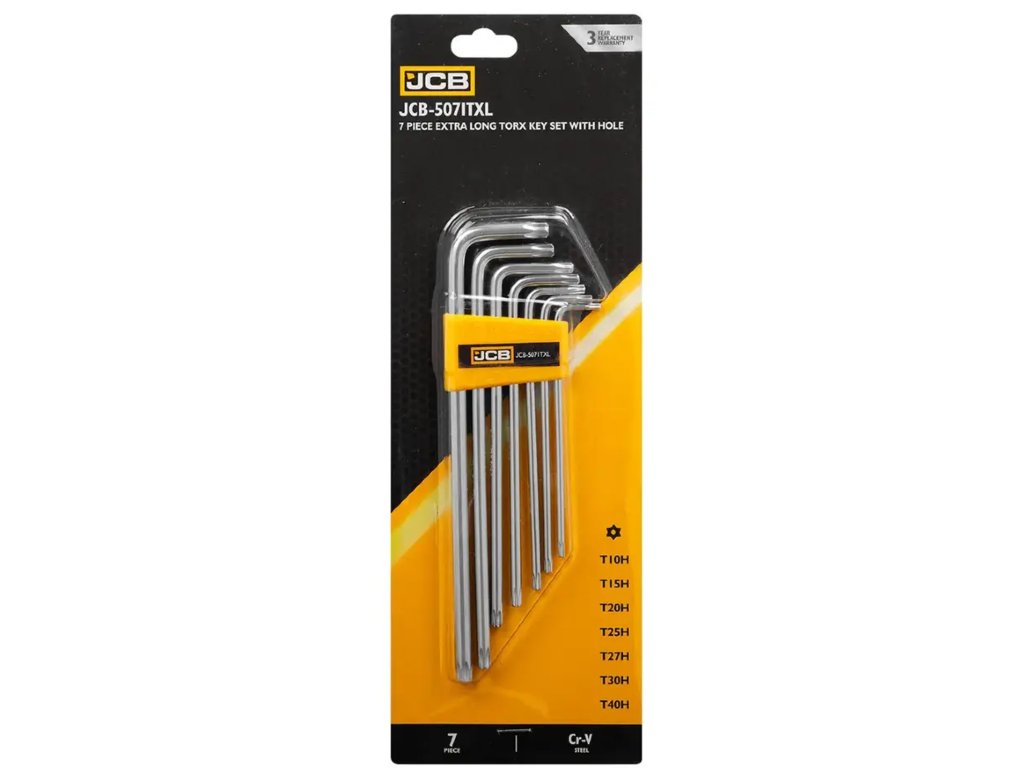 JCB hosszú TORX kulcskészlet L-típusú lyukkal, 7 db (T10H–T40H), Cr-V