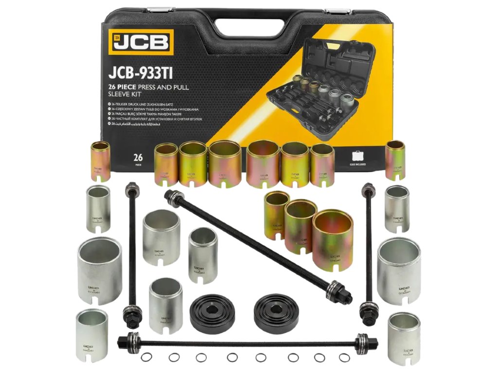 JCB kar persely, csapágy és csap lehúzó készlet adapterekkel, 26 darabos