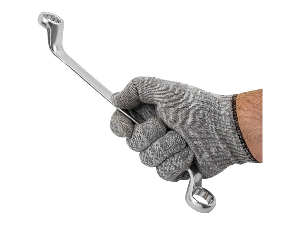 A kulcs mindkét vége 75°-os szögben meghajlítva kényelmes munkát tesz lehetővé nehezen elérhető helyeken – például motorokon, alvázalkatrészeken vagy szerelvényeken.