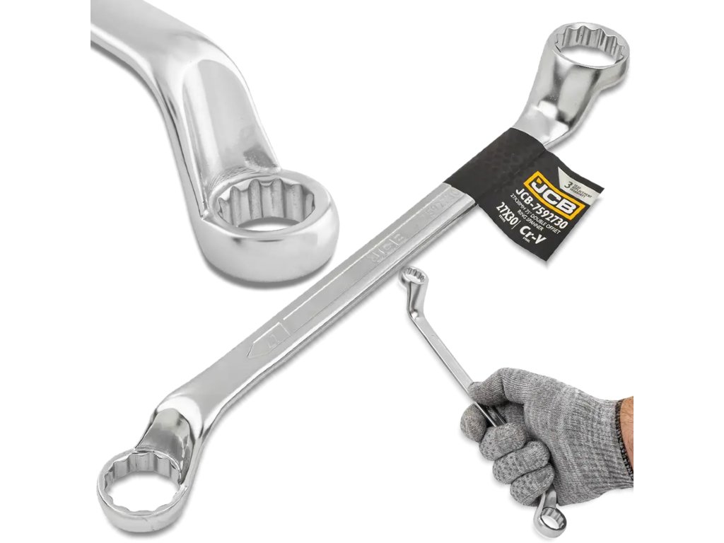 JCB Kétvégű csillagkulcs, 75°-os szögben elfordított, 27 x 30 mm, Cr-V, 12 hegyű