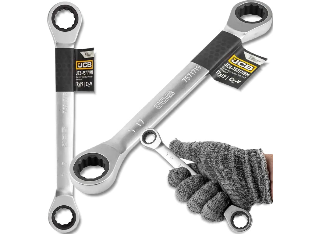 JCB kétvégű csillagkulcs racsnival 17 x 19 mm, Cr-V, 12 pontos