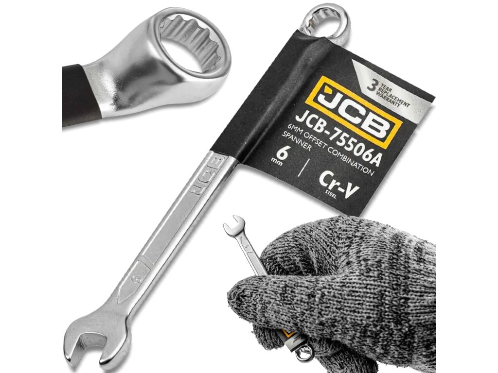 JCB Kombinált lapos villáskulcs 6 mm, 75°-ban hajlított