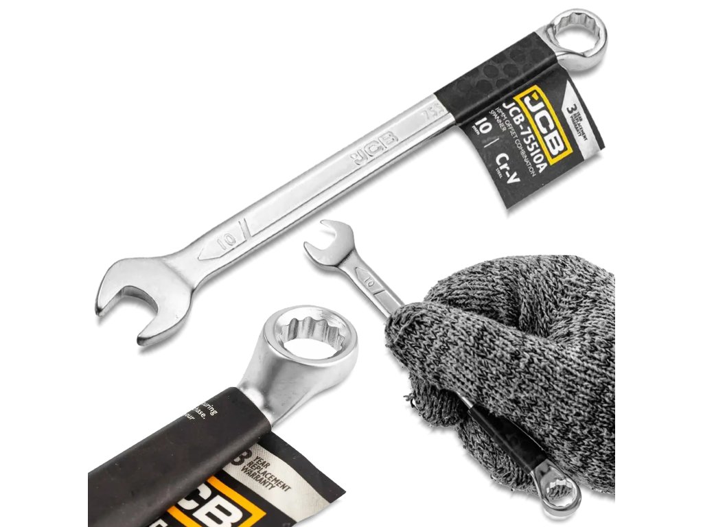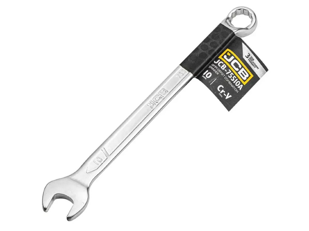JCB Kombinált villáskulcs 10 mm, 75°-os szögben elfordított, Cr-V acél, kétoldalas