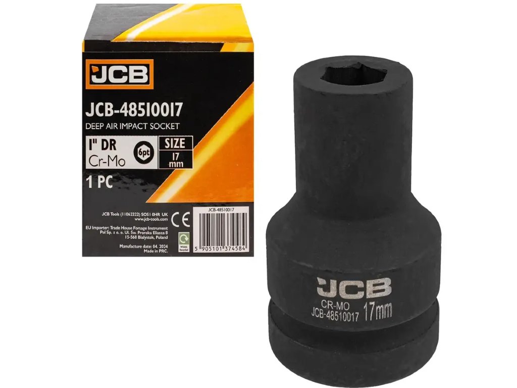 JCB mély dugókulcs 1", 17 mm, 6 oldalú, Cr-Mo