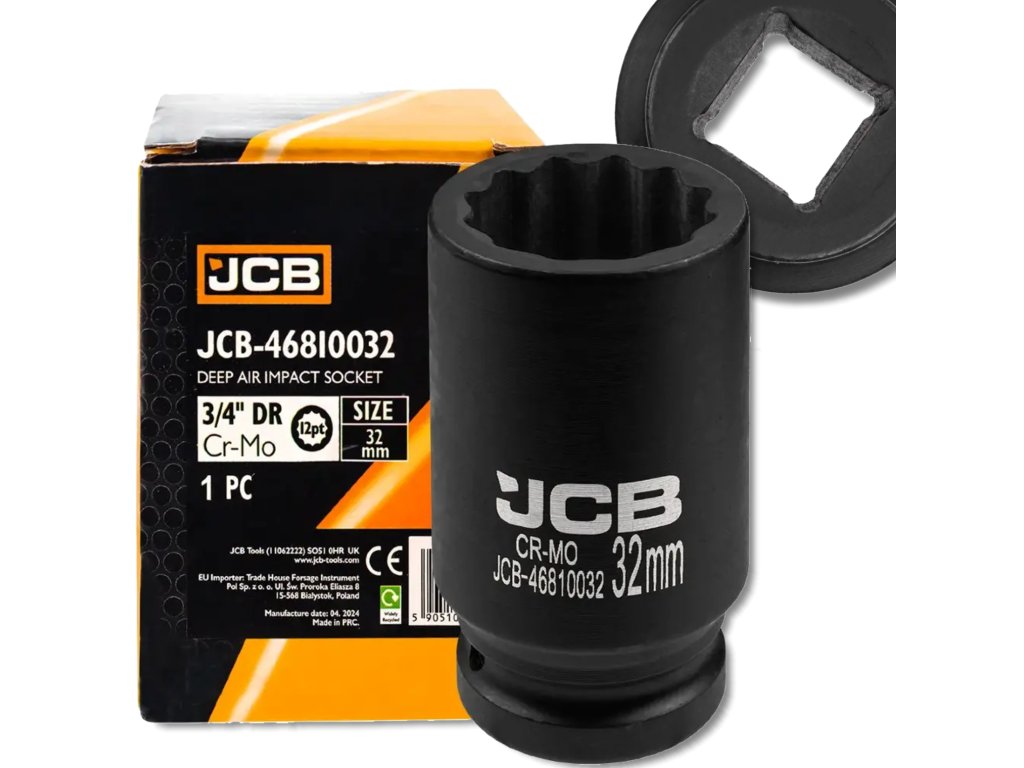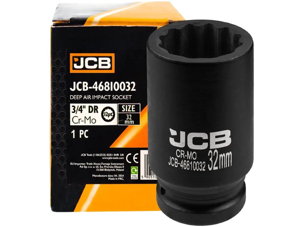 JCB mély dugókulcsfej 3/4" 32 mm, 12-pontos, Cr-Mo