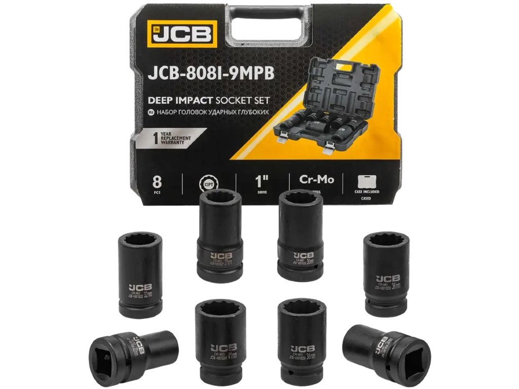 JCB mélyhúzó dugókulcs készlet 1", 12-pontú, Cr-Mo, 8 részes.