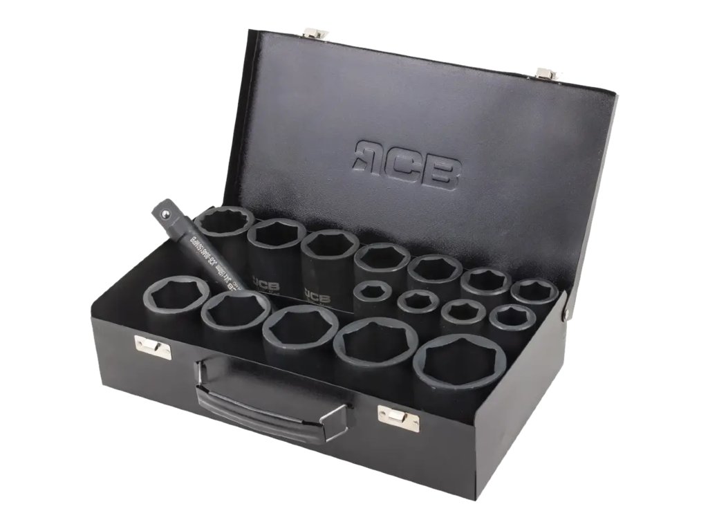 A JCB Tools 17 részes mélyhúzó dugókulcs készlet egy professzionális szerszám, amelyet intenzív műhelyi munkákhoz terveztek, beleértve a csavarok és anyák összeszerelését és szétszerelését ütvecsavarozókkal.