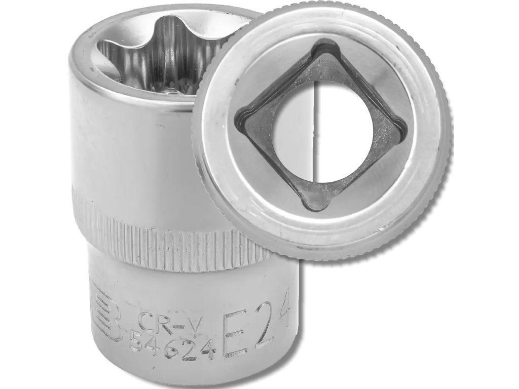 Az E24, 1/2"-os profilú dugókulcs egy megbízható és tartós szerszám, amelyet külső Torx profilú kötőelemekhez terveztek. Precíziós megmunkálásának köszönhetően kiváló tapadást biztosít a csavarokhoz és anyákhoz, csökkentve a megcsúszás és az üregek károsodásának kockázatát.