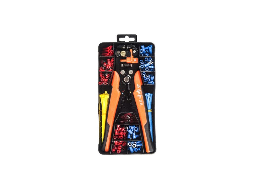 Ideális a 0,2–6 mm² átmérőjű kábelek szigetelésének lehúzásához és a 0,5–6 mm-es csatlakozó végek crimpeléséhez. A készlet tartalmazza a kötözőszalagokat és a csatlakozó végeket, mindez eredeti csomagolásban.