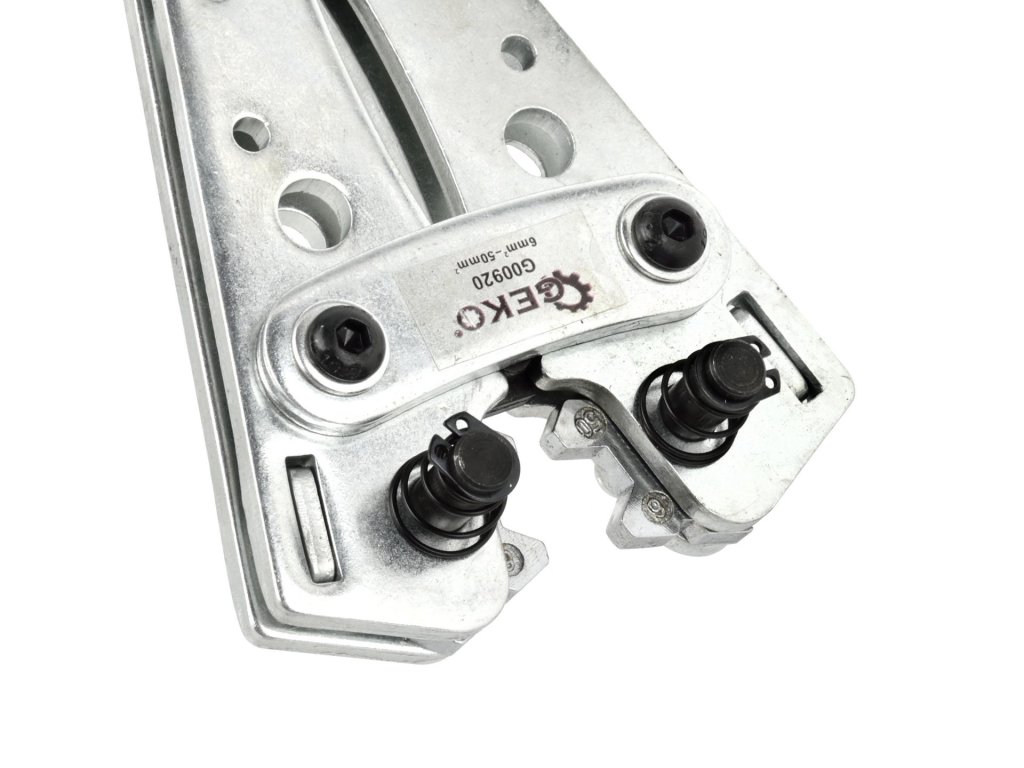Kábelgyűrűs krimpelő szerszám 6-50mm G00920 precíziós kábelgyűrűk préstechnikai formázására készült réz (Cu) és alumínium (Al) anyagokból. A kalibrált SCM-40 edzett acélból készült hatszögletű matrica segítségével tökéletes eredmény érhető el minimális erőfeszítéssel.