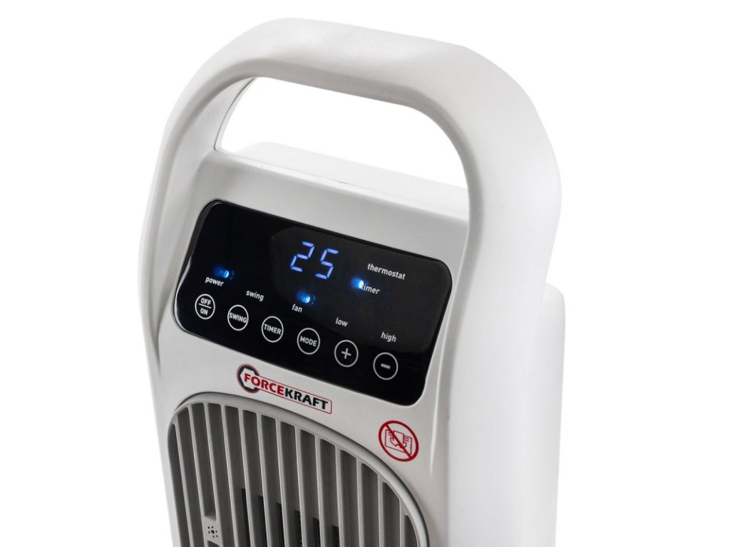 A készülék kétfokozatú beállítással rendelkezik: 1000 W fűtés legfeljebb 15 m²-es helyiségekhez, 2000 W fűtés legfeljebb 20 m²-es helyiségekhez.