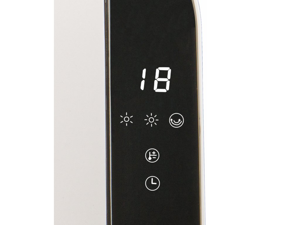 A készülék kerámikus fűtőt használ, amely hatékonyabb működést és hosszabb hőtárolást biztosít. Ez a megoldás megszünteti a kellemetlen szagokat, amelyeket a szokásos spirális fűtőelemek használata okozhat.
