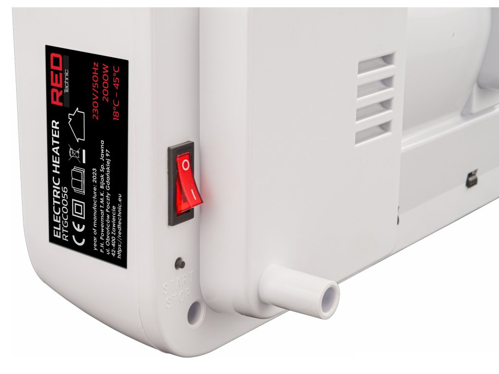 - Fűtési teljesítmény szabályozás 0 / 1000 W / 2000 W