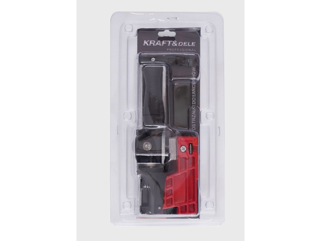 Keretes kézi láncélező KD10154, Kraft&Dele márkájú eszköz, amely gyorsan és könnyen megéleli a láncot a fűrész vezetővasán. A készülék masszív kivitelű, és rendelkezik mélységkorlátozóval.