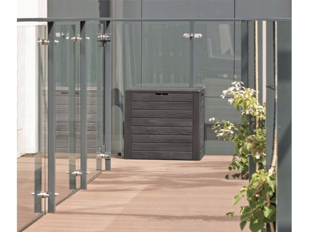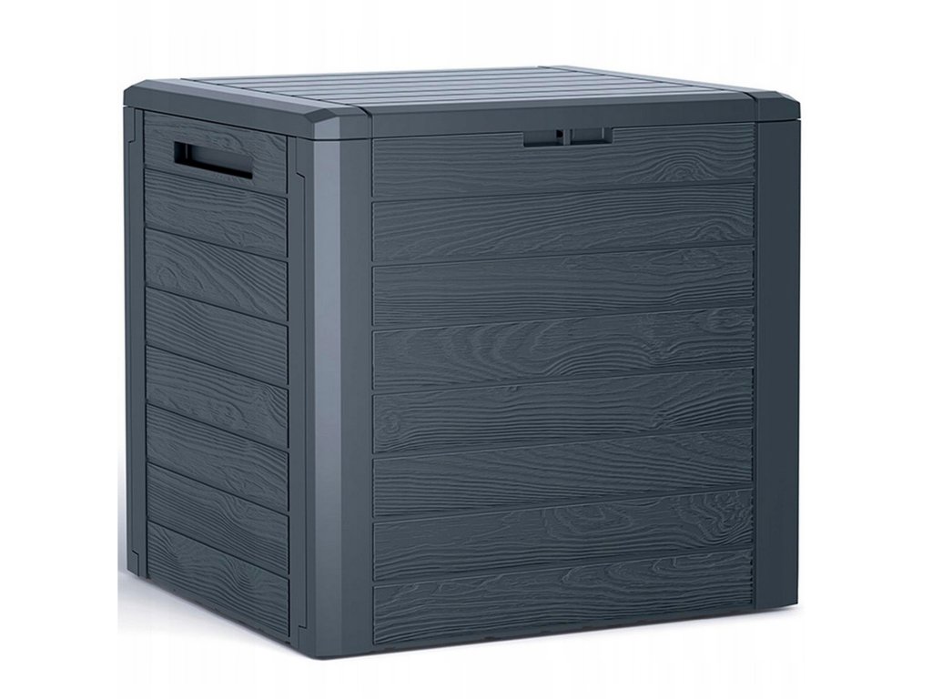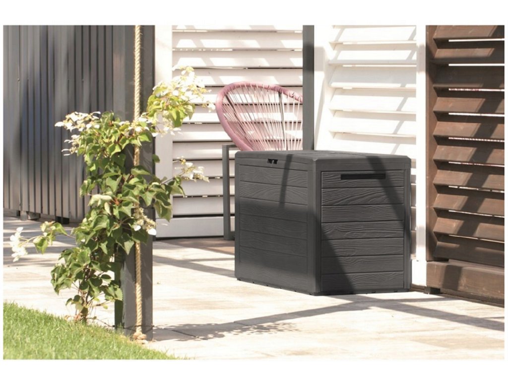 Praktikus kerti doboz 140 literes kapacitással, amely fa deszkákra emlékeztető dizájnnal rendelkezik. Ez a tárolóbox ideális szerszámok, párnák, kerti tömlők vagy játékok tárolására. Az időtálló műanyag anyagnak köszönhetően védi a tárolt tárgyakat a portól és az esőtől, így alkalmas használatra a kertben, erkélyen, teraszon, garázsban vagy műhelyben. A doboz könnyű, egyszerűen karbantartható, nem igényel különösebb gondozást vagy karbantartást.