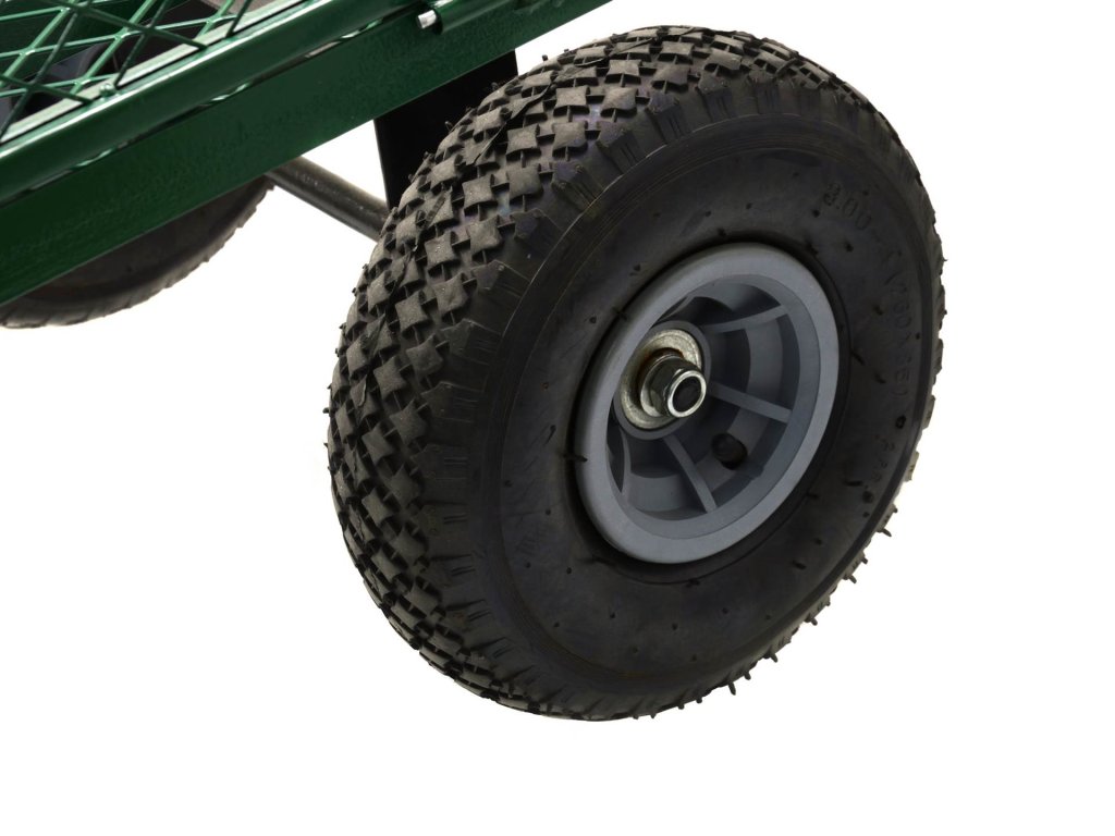 Tökéletes mindennapi kerti munkákhoz, de kiválóan működik a raktári térben is. A kocsi leszerelhető ponyvával van felszerelve, amely megkönnyíti a laza anyagok szállítását.