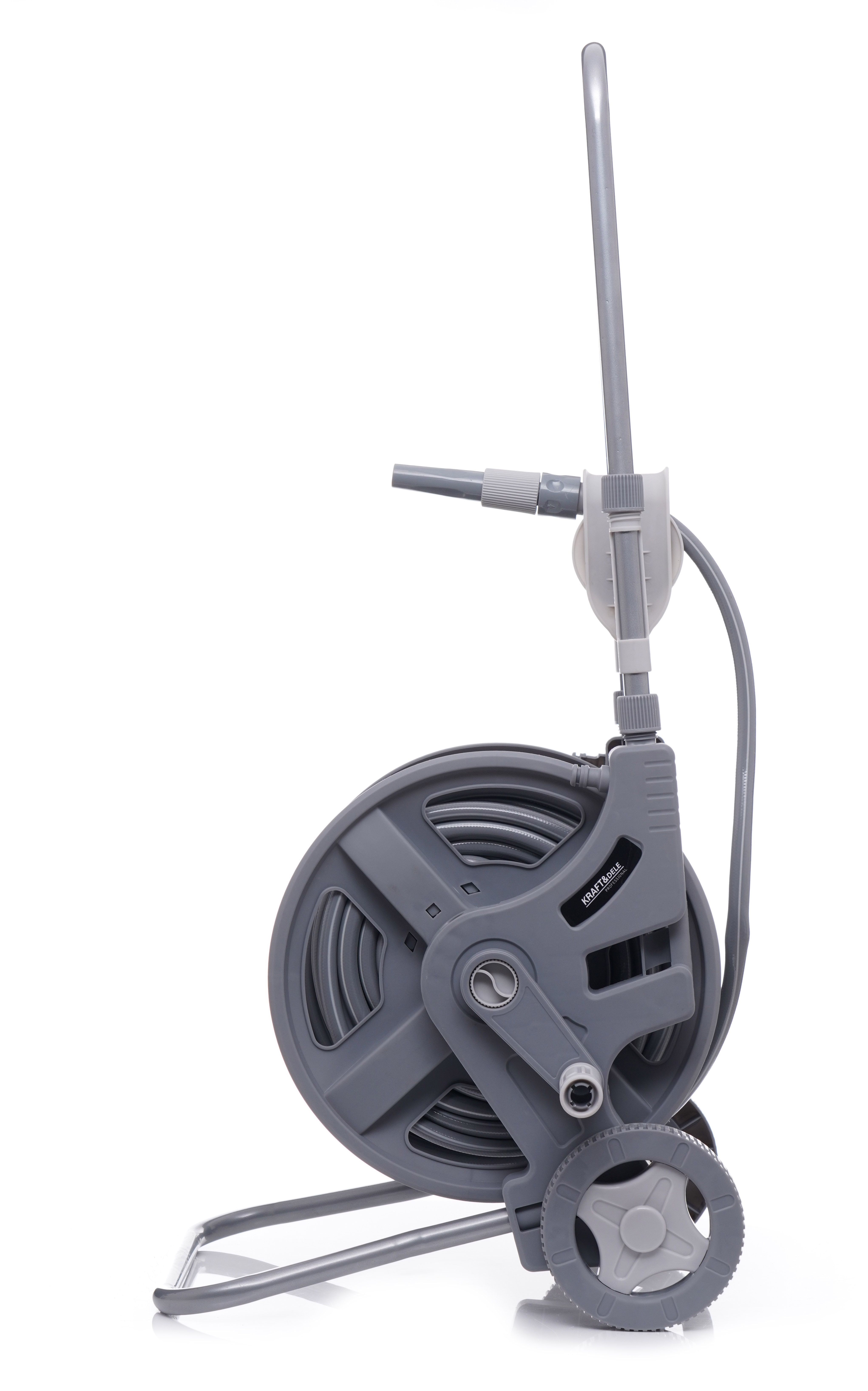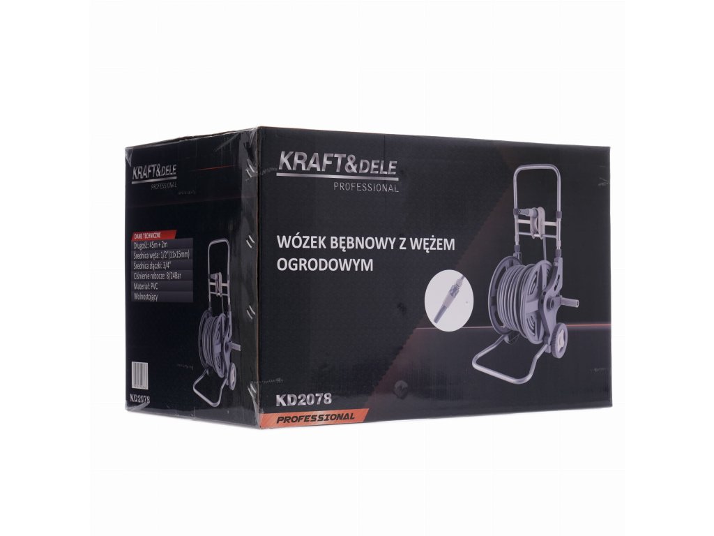 Kerti kocsi locsolótömlővel Kraft&Dele modell KD2078 ideális eszköz a kertészek számára, akik értékelik a gyors és problémamentes öntözést. Kiváló minőségű alumiból készült, így ellenáll a korróziónak és egyben könnyű. A tömlő hossza 45 m, átmérője 1/2" (3 rétegű), UV-sugárzásnak ellenálló PVC-ből készült.
