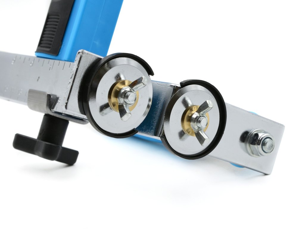 Kétélű gipszkarton vágó ideális eszköz a gipszkarton táblák precíz vágásához. Két, 38 mm átmérőjű kerek pengével van felszerelve, amelyek lehetővé teszik akár 150 mm széles vágások végrehajtását. Ez a vágó olyan táblákhoz lett tervezve, amelyek vastagsága nem haladja meg a 15 mm-t.