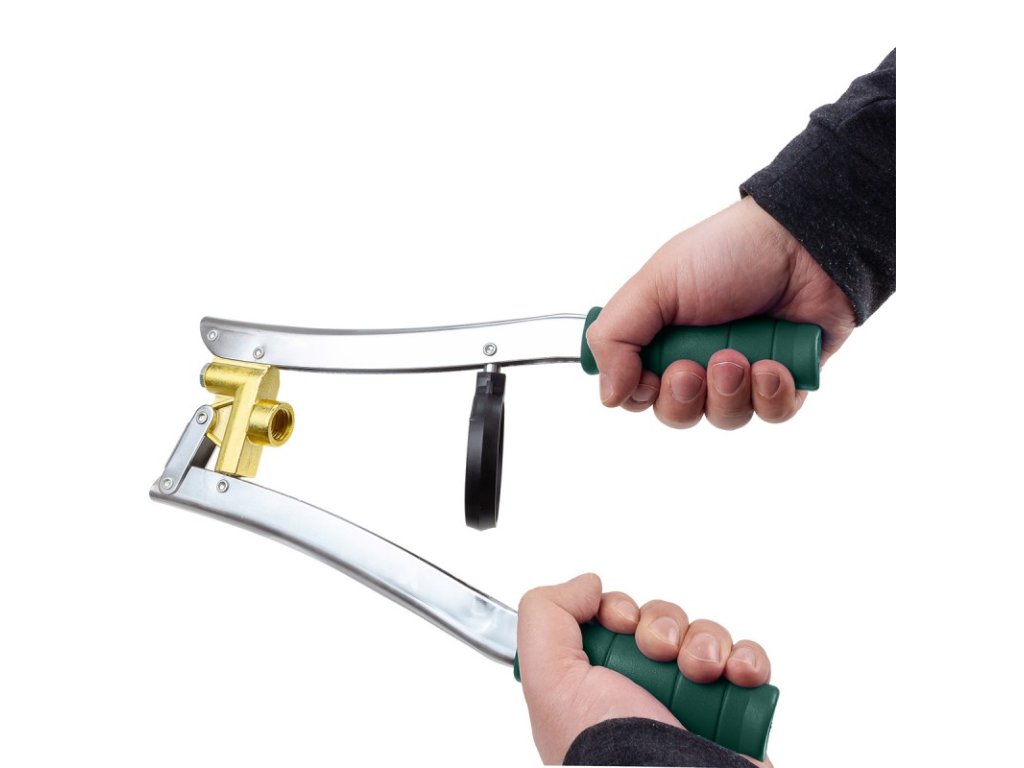 A kétkezes zsírzóprés ergonomikus fogantyúkkal rendelkezik, amelyek megkönnyítik a munkát és optimalizálják a zsírzóprés működését.
