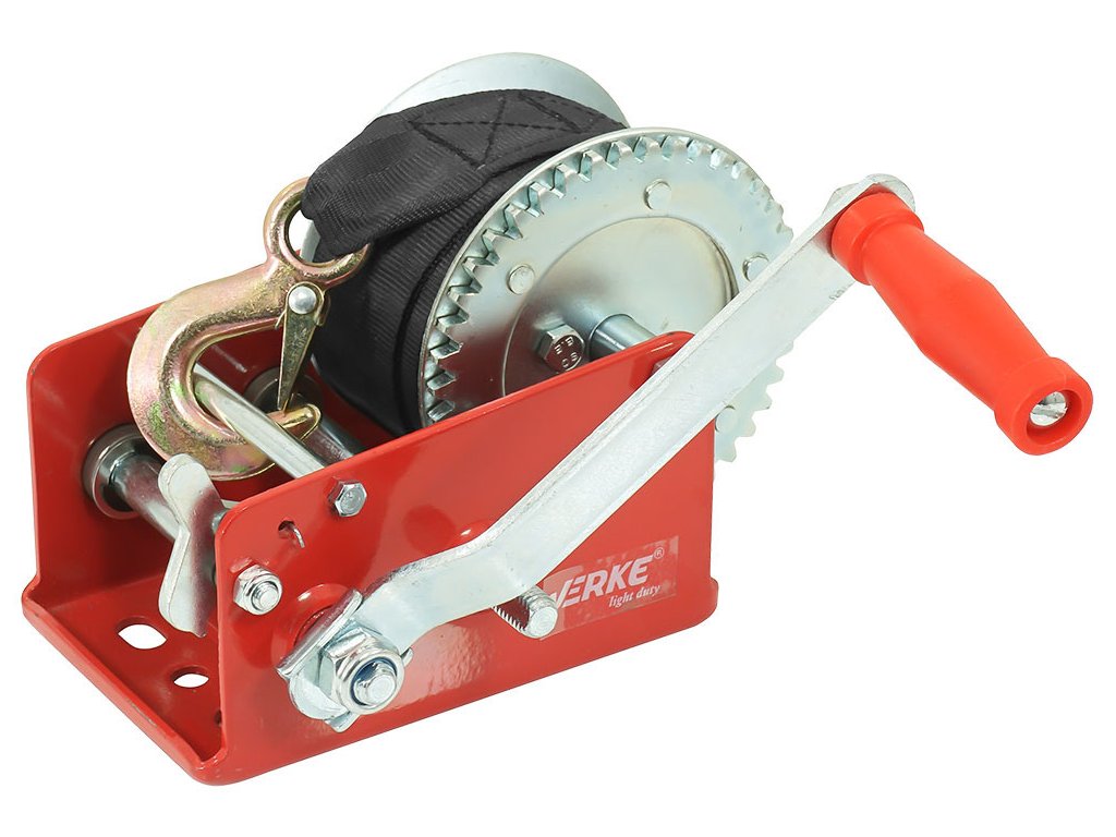 Ez egy robosztus acél konstrukcióval készült csörlő, amely kisebb hajók, jet ski, quadok és egyéb kis járművek kihúzására lett tervezve. Könnyen hozzáférhető irányváltó kar található rajta: feltekerés/letekerés. A csörlő kiváló minőségű anyagokból készült, amelyek kellő ellenállósággal rendelkeznek - szerkezeti acél és öntött horog visszatérő rugóval.