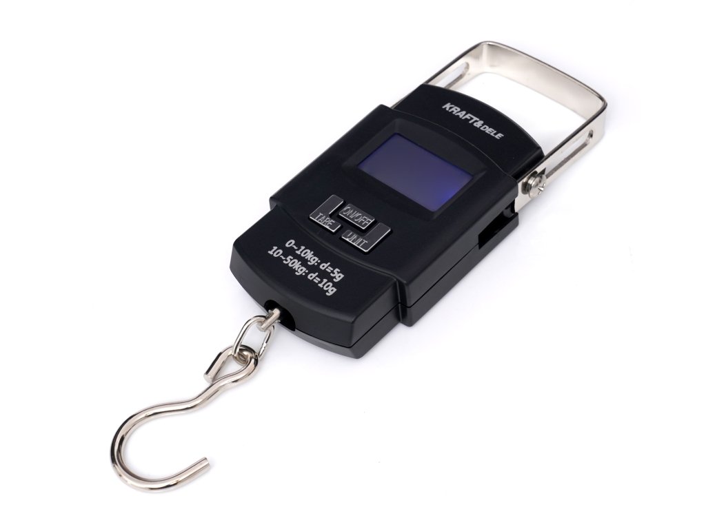 Modern kompakt kézi kampós mérleg a Kraft&Dele márkától, KD11413 modell, hasznos eszköz minden otthonban. Elengedhetetlen a horgászok számára, élelmiszerek és halak méréséhez. Kiváló a poggyászok, csomagok súlyának mérésére is. Használható raktárban, garázsban és műhelyben is.