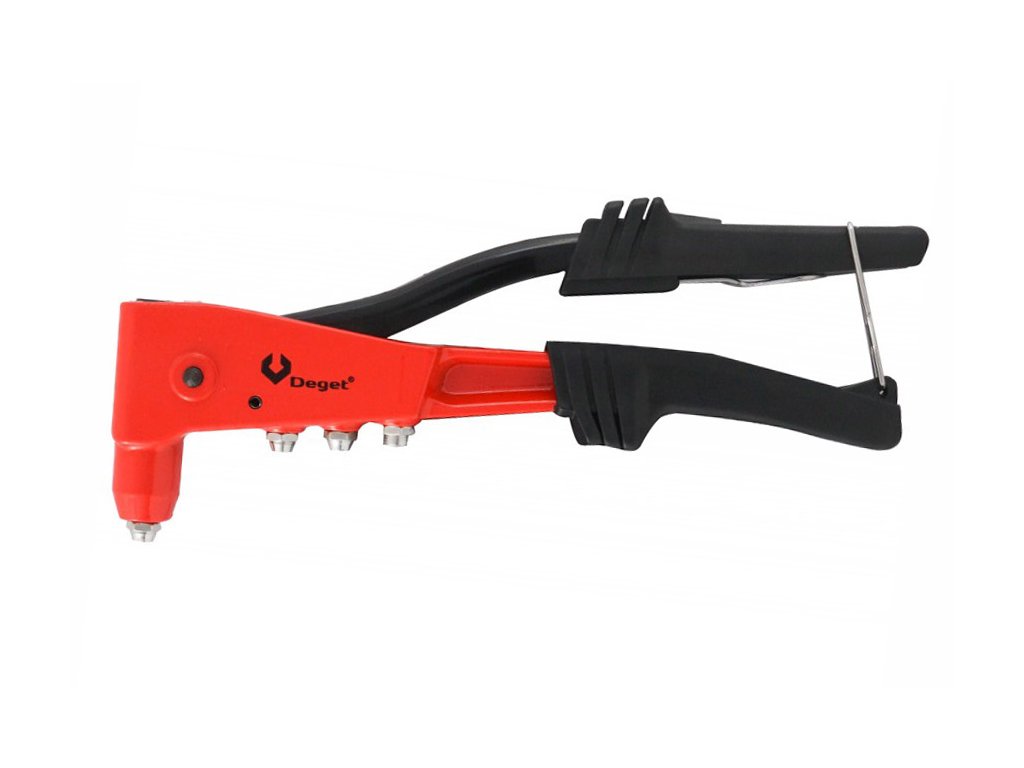 A Kézi szegecshúzó 10" DEGET V86011 a 2,4 mm-től 4,8 mm-ig terjedő pop-nýtokhoz készült. A ház alumíniumból készült, a fogantyú pedig szénacélból. A húzómechanizmus három pofával van felszerelve.