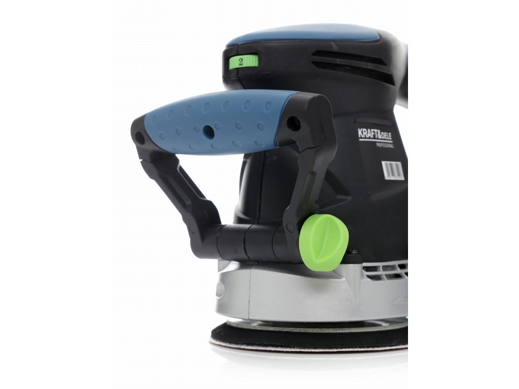 Excentrikus mozgás biztosítja az anyag egyenletes csiszolását nyomok és egyenetlenségek nélkül. A készülék fordulatszabályozása a felső részen lévő tekerőgombbal történik.