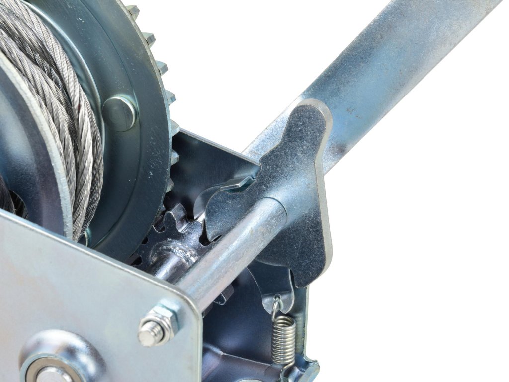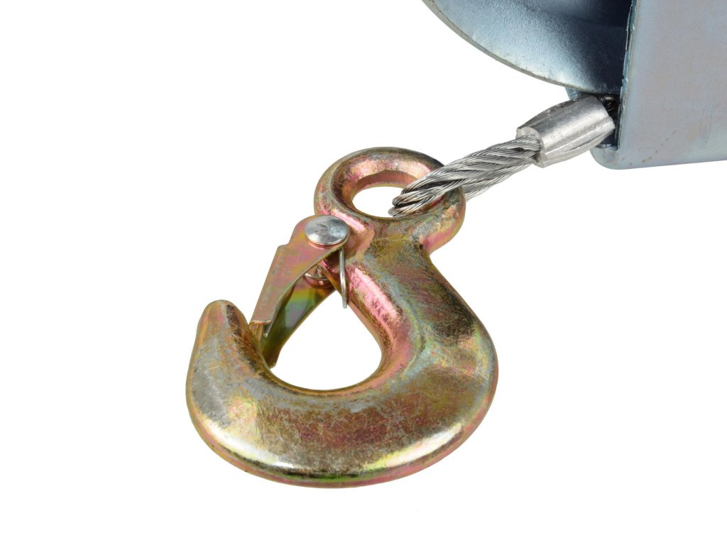 Ez a csörlő acél biztonsági zárral van felszerelve, rugós reteszelő mechanizmussal, amely maximális biztonságot nyújt a használat során. Magas minőségű anyagokból készült, ami garantálja a hosszú élettartamot és megbízhatóságot.