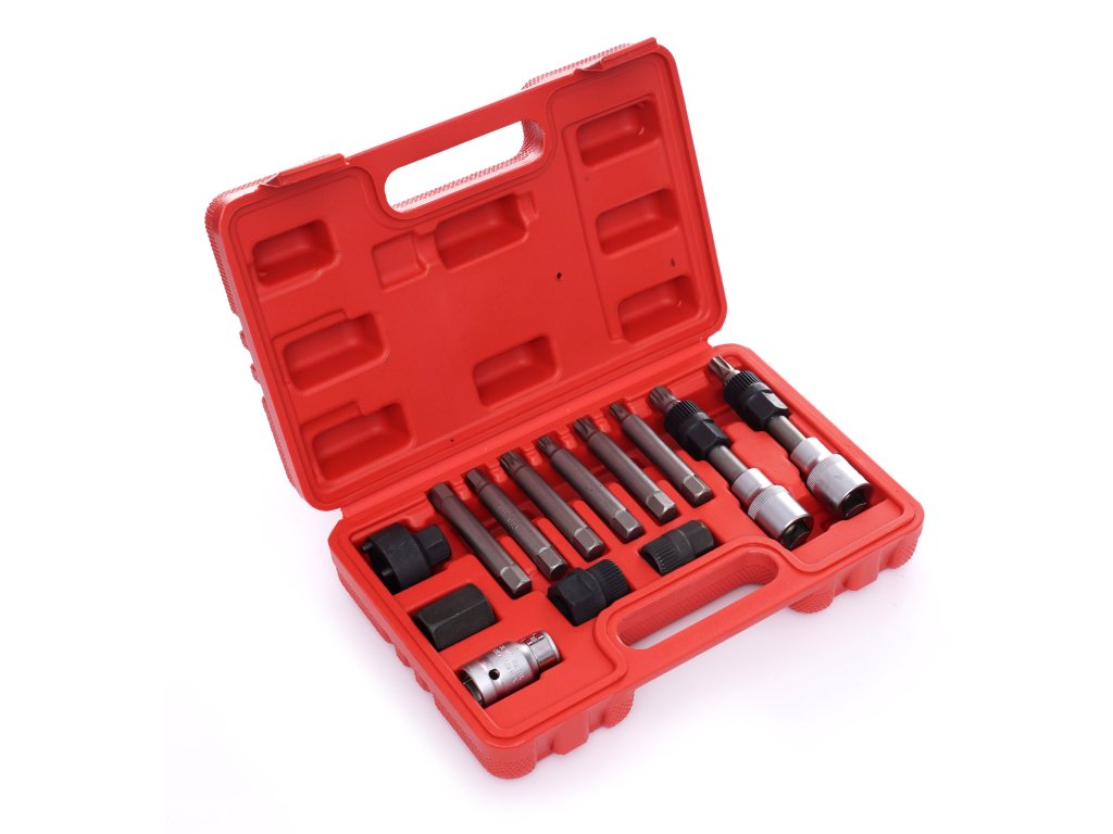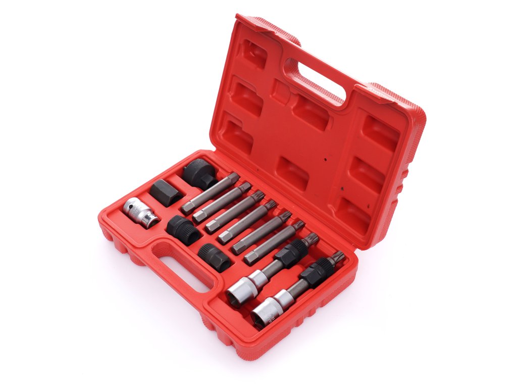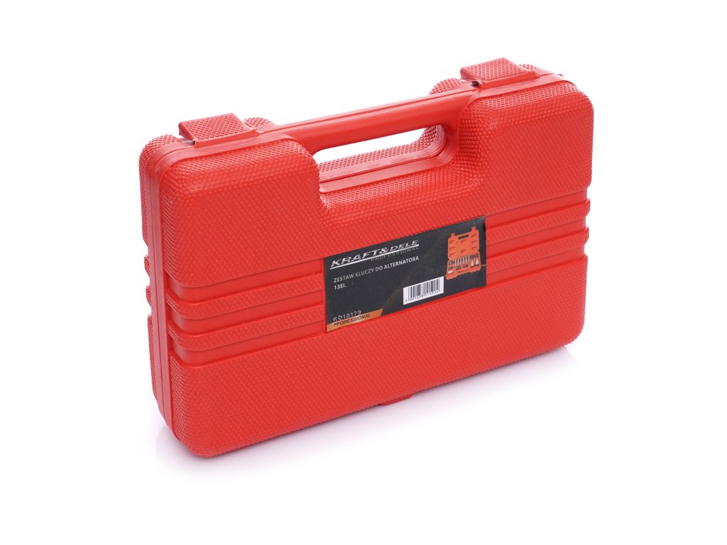 Kulcskészlet generátorok szereléséhez és leszereléséhez KD10179 – 13 részből álló készlet kuplungos generátorok szereléséhez és leszereléséhez. A készletben található kulcsok lehetővé teszik egyszerre a szíjtárcsa rögzítőcsavarjának meglazítását és a kuplungos szíjtárcsa megtartását. Ilyen készlet minden műhely alapfelszerelése.