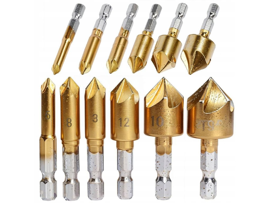 Ez a kúpos maró és fúró készlet 6 darab kiváló minőségű szerszámot tartalmaz, amelyek ideálisak záhlubott helyek fúrására és a sorja eltávolítására. Minden szerszám titánium bevonattal rendelkezik, amely magas ellenállást és hosszú élettartamot biztosít.