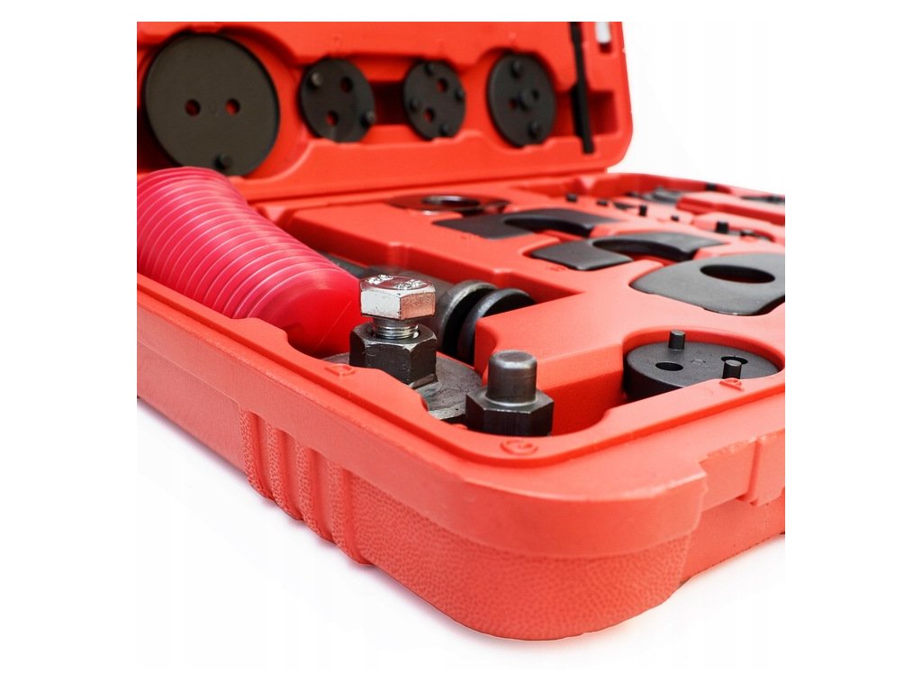 Komplex Lágyító dugattyú 35 db készlet egy nélkülözhetetlen szerszám a tárcsafékkel szerelt gépjárművek javításához. A készletet úgy tervezték, hogy megkönnyítse a dugattyúk kiemelését mind az első, mind a hátsó fékeknél, és kompatibilis a legtöbb európai és ázsiai autómárkával. A precíz adapterek gondoskodnak arról, hogy a dugattyú simán csússzon be a féknyereg hengerébe, megakadályozva ezzel a dugattyú beragadását vagy sérülését. A mágneses végződésű csavarkulcs emellett biztosítja a helyes beállítást a munka során.