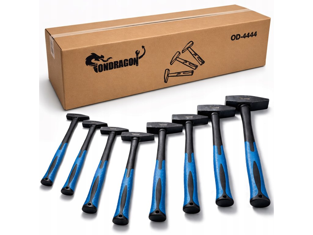 A professzionális lakatos kalapácskészlet Ondragon ideális választás műhelyek, szervizek és otthoni használatra. Nyolc különböző súlyú kalapácsot tartalmaz, így sokféle feladat könnyen elvégezhető – a finombeállításoktól az igényesebb ütésekig. Az ellenálló, üvegszálas nyél nagy szilárdságot, hosszú élettartamot és kényelmet biztosít a munka során. Az ergonomikus fogantyú ráadásul növeli a biztonságot és a kényelmet a mindennapi használat során.