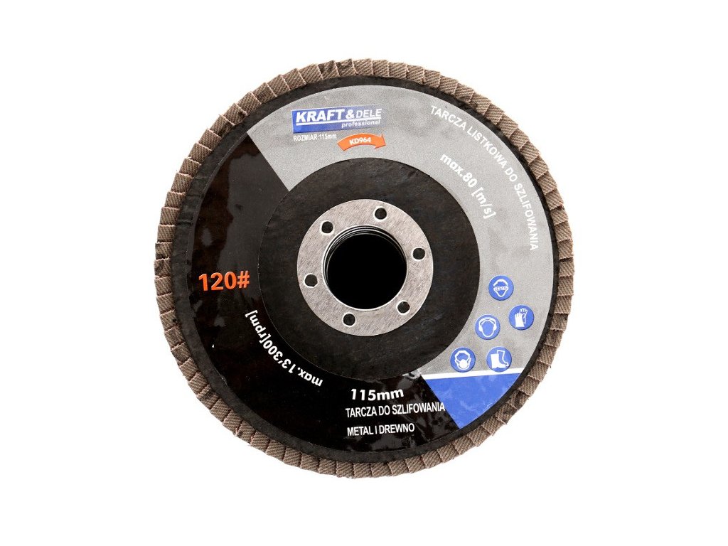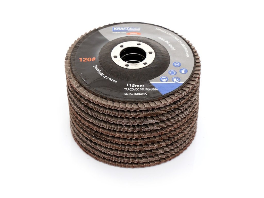 Lamellás csiszolókorong készlet 115 mm P80 KD962 a Kraft&Dele márkától. Univerzális csiszolókorong fémek és fa megmunkálásához, P80 granulációval.