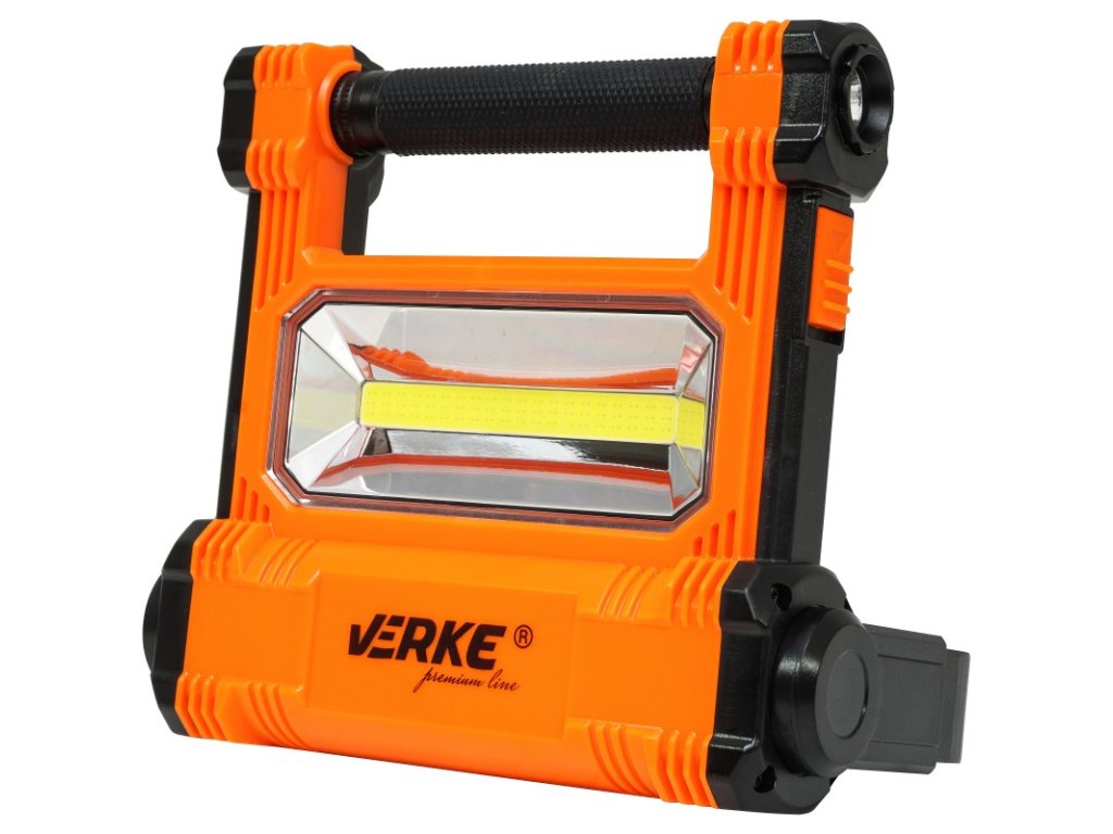 A COB LED technológia alkalmazásának köszönhetően a lámpa sokkal több fényt biztosít a hagyományos megoldásokhoz képest, miközben sokkal energiatakarékosabb is. A reflektor munkaterületek világítására szolgál a műhelyben, építkezésen vagy garázsban. A COB dióda teljesítménye 20W, amely 2000 lm fényáramot produkál. A lámpa állítható állványtartóval rendelkezik, amelynél van egy gomb a dőlésszög rögzítésére. Az erős beépített akkumulátor folyamatos működést biztosít körülbelül 2 órán át. A Verke termékek Lengyelországban a kiemelkedő kivitelezési minőségükről és hiteles paramétereikről váltak híressé.