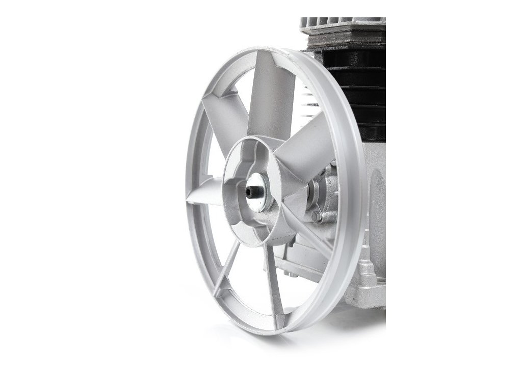Különösen profilozott, nagy méretű szíjtárcsák biztosítják a ventilátor szerepét, amely hűt és növeli a hatékonyságot és a hosszú élettartamot a kompresszor számára.