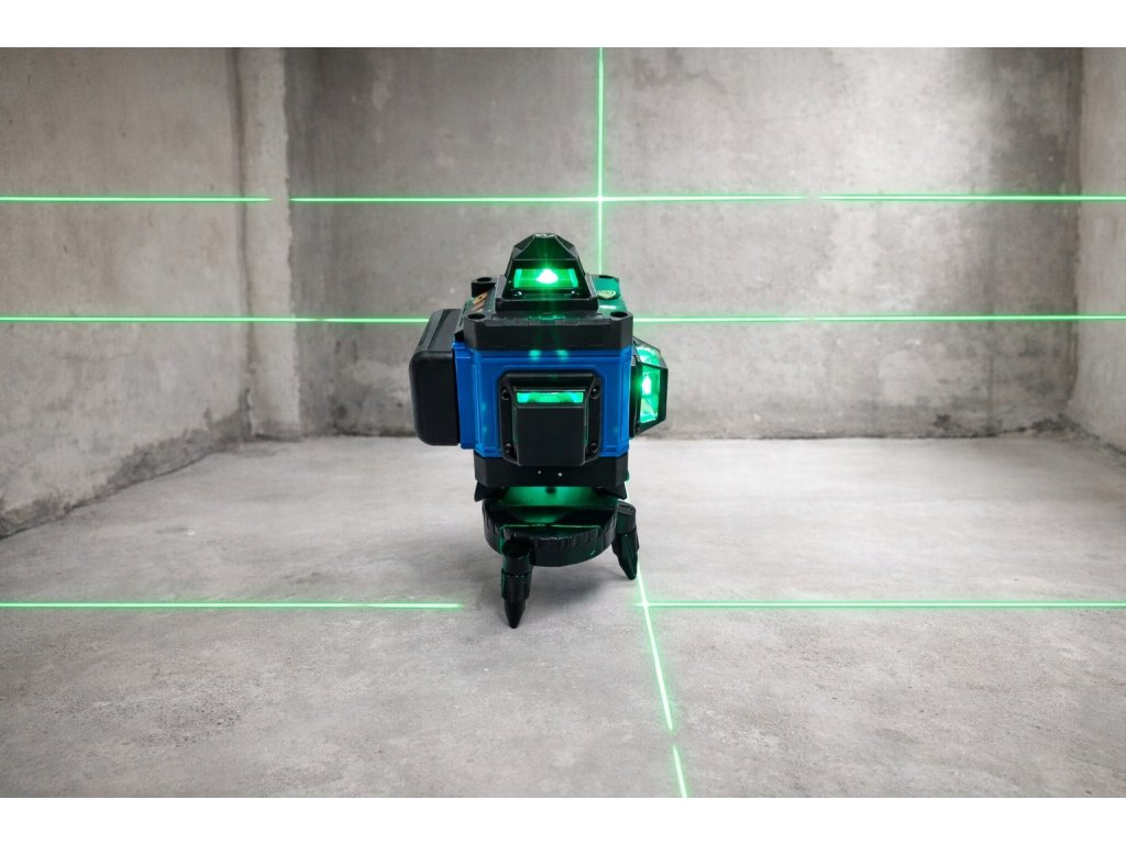 Lézeres vízszintező 4D 360° zöld sugár, állvány, 16 vonal, akár 40 m hatótávolság