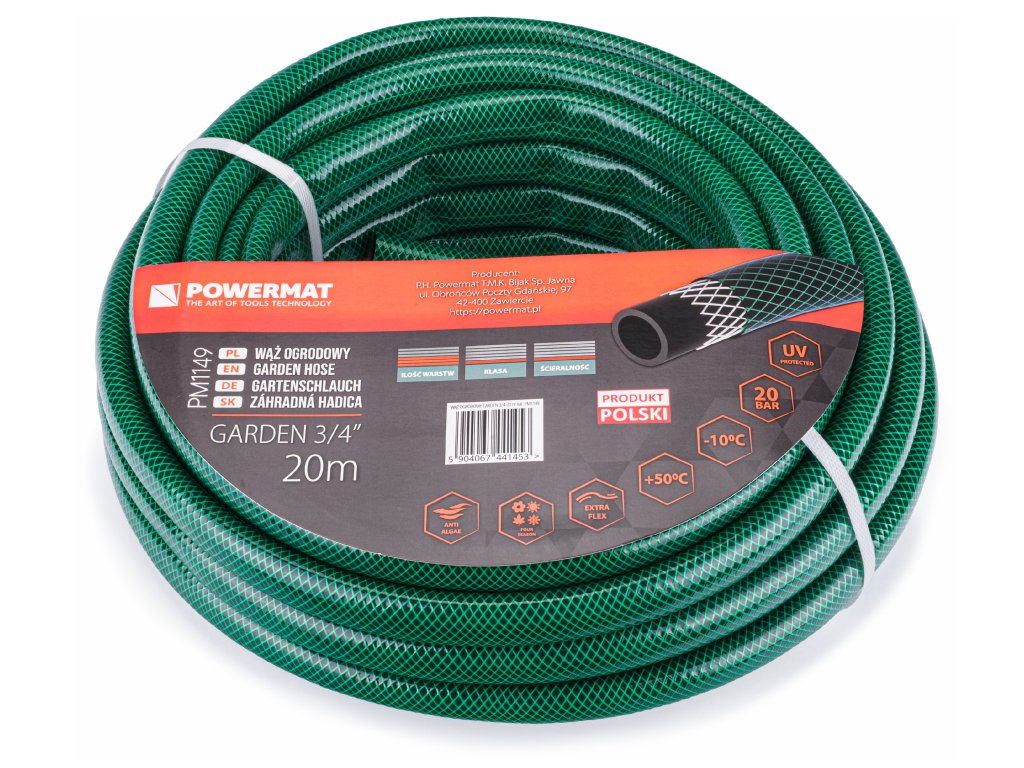 Ez a magas minőségű locsolótömlő Lengyelországban készült, és kiemelkedik a napfény ellenállásáról, valamint a széles hőmérsékleti tartományról.
