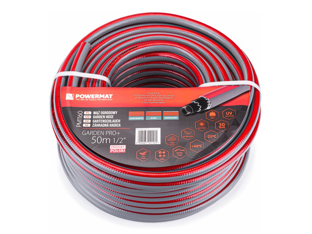 Locsolótömlő Garden Pro+ 1/2" - 50 m a Powermat márkától (Lengyelországban készült) tökéletes megoldást nyújt minden kertész számára, aki megbízható és tartós tömlőt keres kerti igényeihez.