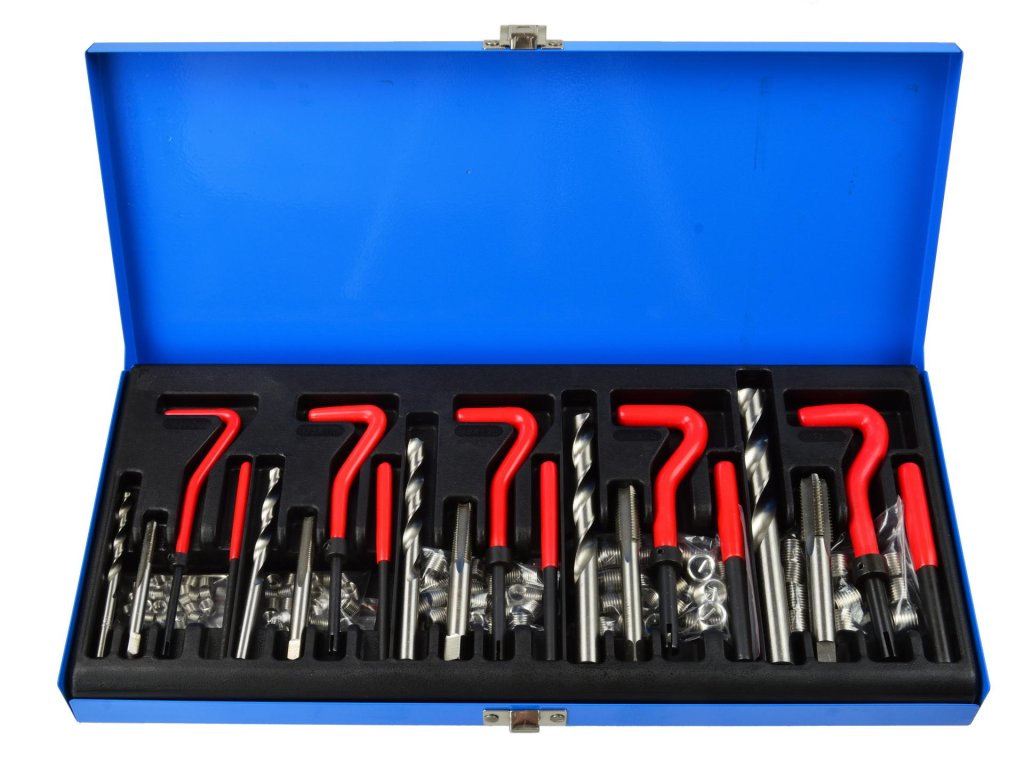 M5-M12 menettörésjavító készlet (131 darabos) ideális segítőtárs a motorok és egyéb járművek alkatrészeinek javításához. Az egyszerűsített menetfúrók lehetővé teszik a menetek létrehozását, amelyekbe spirálos betétek kerülnek, amelyeket kemény rozsdamentes acélból készítettek. A betét telepítési folyamata megkönnyíti a vezető és a dörzsölő használata, amely eltávolítja a betét kiálló végeit.