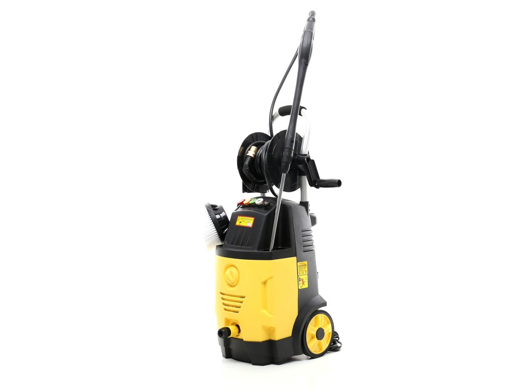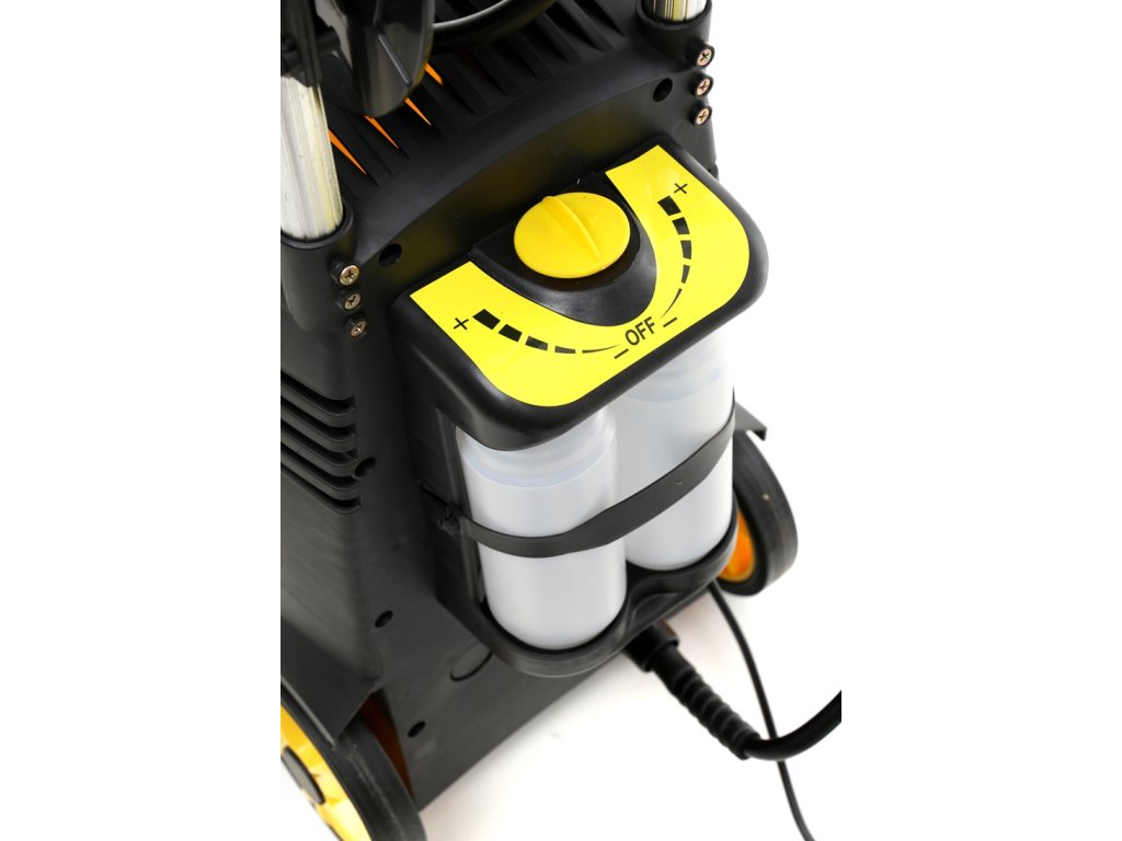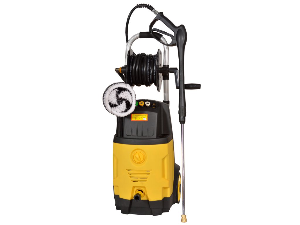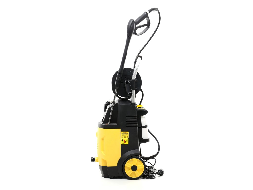 A Auto-Stop rendszernek köszönhetően a készülék automatikusan kikapcsol, amikor elengedik a pisztoly ravaszát, így energiát és vizet takarít meg, és meghosszabbítja a pumpa élettartamát. Beépített tömlőhúzó tekercs és nagy kerekek könnyítik a kezelését és tárolását, míg a beépített mosószertartály lehetővé teszi a tisztítószerek egyszerű felvitelt.