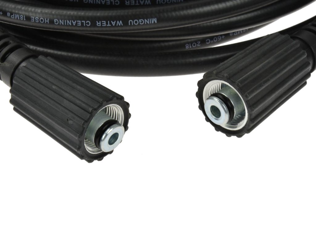 A tömlő mindkét végén M22x1.5 belső menetes csatlakozóval van felszerelve, ami megkönnyíti a csatlakoztatást és biztosítja a kompatibilitást bármilyen, M22x1.5 menettel felszerelt mosóval.